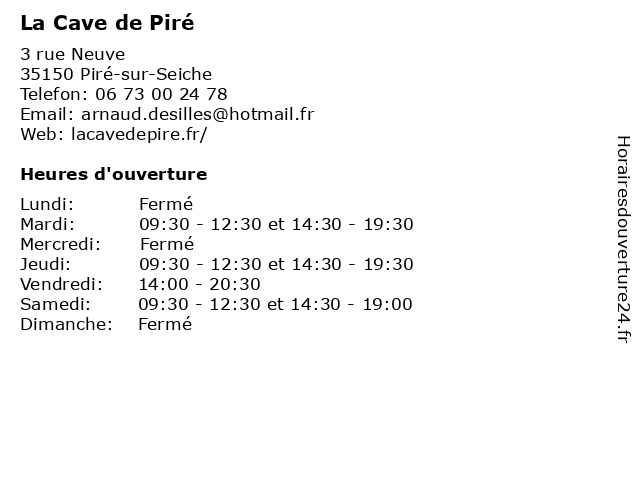 | Samedi | 09:30-12:30 et 14:30-19:00 |