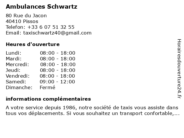 2 LABOUHEYRE AMBULANCES (Distance: 15,27 km) 195 Rue Marc Mougneres, 40210 Labouheyre ambulances, labouheyre 3 6 Ambulances SOS Atlantic (Distance: 44,90 km) 71 Route d'Uza, 40170 Saint-Julien-en-Born ambulances, atlantic, sos |
