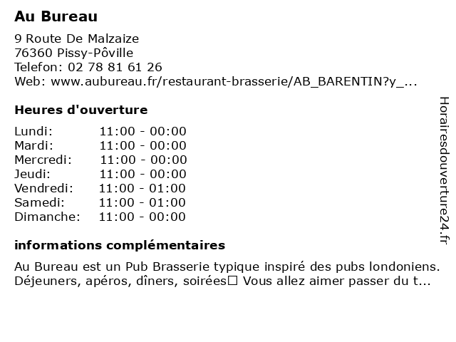 | Lundi | 11:00-00:00 |