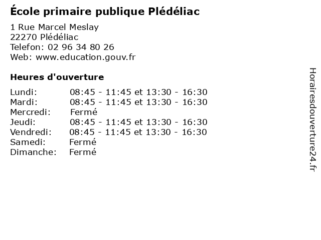 | Mardi | 08:45-11:45 et 13:30-16:30 |