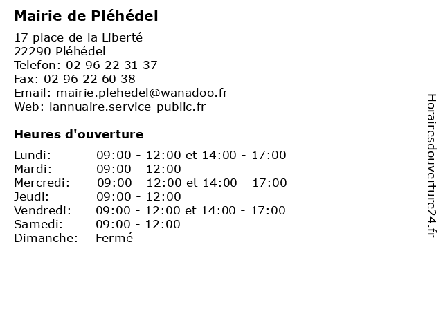 | Lundi | 09:00-12:00 et 14:00-17:00 |