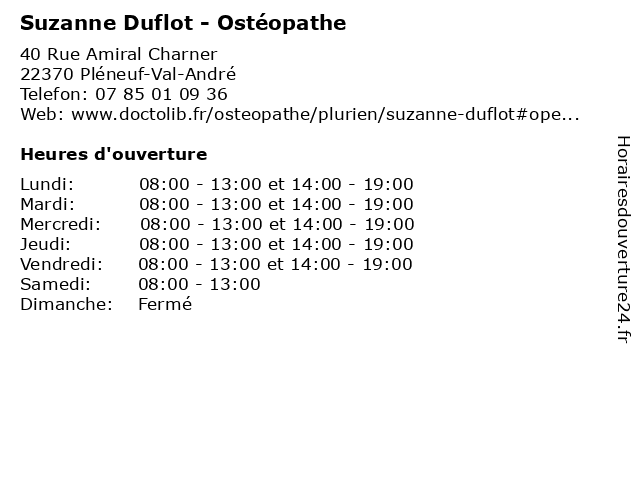 | Lundi | 08:00-13:00 et 14:00-19:00 |