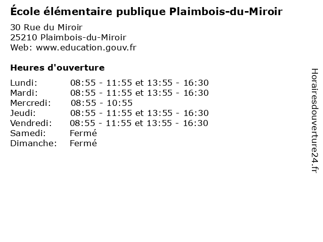 | Samedi | Fermé |