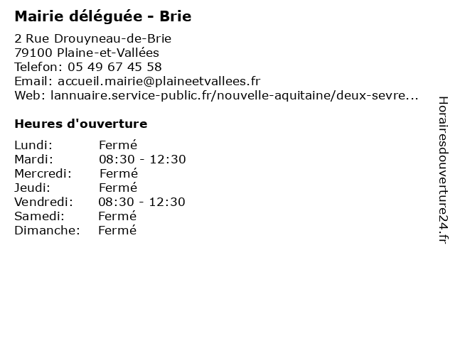 Termes de recherche pour Mairie déléguée - Brie:de, brie, administration, mairie, assoc public, déléguée |