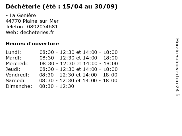 | Vendredi | 08:30-12:30 et 14:00-18:00 |