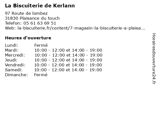 | Mardi | 10:00-12:00 et 14:00-19:00 |