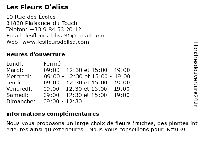 | Samedi | 09:00-12:30 et 15:00-19:00 |