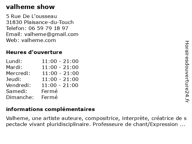 Termes de recherche pour valheme show:show, coach de vie, organisateur d'événements, groupe de musique, producteur de musique, professeur de musique, école d’art, valheme |