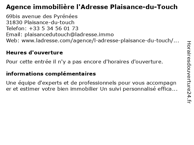Appeler Agence immobilière l'Adresse Plaisance-du-Touch | |