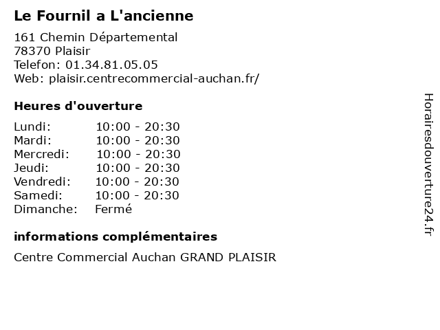 | Lundi | 10:00-20:30 |
