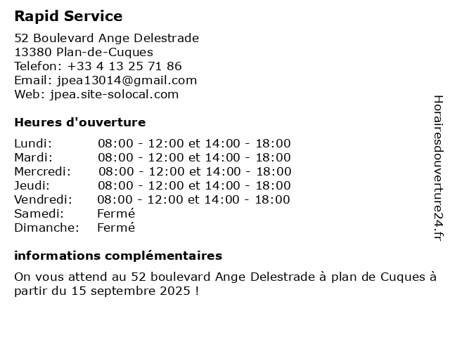 | Mardi | 08:00-12:00 et 14:00-18:00 |