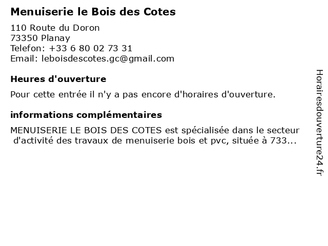 | Appeler Menuiserie le Bois des Cotes | |