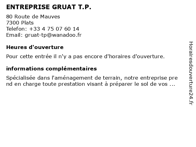 Appeler ENTREPRISE GRUAT T.P. | |