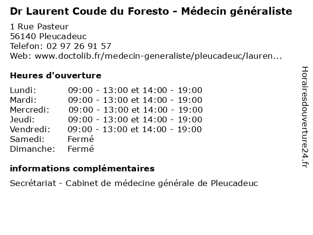 | Lundi | 09:00-13:00 et 14:00-19:00 |