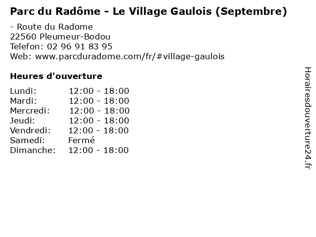 | Samedi | Fermé |