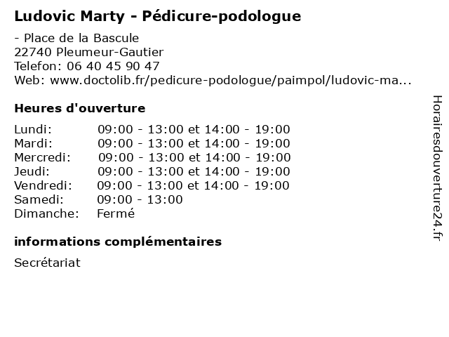 | Lundi | 09:00-13:00 et 14:00-19:00 |