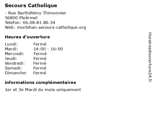 1 Secours Catholique (Distance: 19,55 km) 30 Rue Claire Fontaine, 56380 Guer accueil, association, catholique, organisation, secours 2 Secours Populaire (Distance: 0,00 km) - Rue Barthélémy Thimonnier, 56800 Ploërmel associations, dons, populaire, secours 3 Secours Catholique (Distance: 28,40 km) - Rue de Kerivo, 56660 Saint-Jean-Brévelay accueil, association, catholique, organisation, secours 4 Secours Catholique - Boutique Solidaire (Distance: 38,79 km) 19 Rue Pontivy, 22600 Loudéac accueil, association, boutique, catholique, organisation, secours, solidaire 5 Secours Catholique (Distance: 41,99 km) - rue des Ursulines, 56000 Vannes actions, bénévolat, catholique, dons, partage, secours 6 Secours Catholique (Distance: 46,43 km) 6 Quai du Plessis, 56300 Pontivy accueil, association, catholique, organisation, secours |