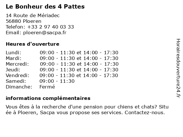 | Mardi | 09:00-11:30 et 14:00-17:30 |