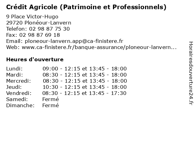 1 CRÉDIT AGRICOLE PLONÉOUR-LANVERN (Distance: 0,03 km) 9 Place Victor Hugo, 29720 Plonéour-Lanvern agricole, crédit, lanvern, plonéour 2 CRÉDIT AGRICOLE PONT-L'ABBÉ (Distance: 6,26 km) 27 Rue du General de Gaulle, 29120 Pont-l'Abbé agricole, crédit, l'abbé, pont 5 CRÉDIT AGRICOLE PLOGASTEL-SAINT-GERMAIN (Distance: 8,93 km) 10 Rue du Kastel, 29710 Plogastel-Saint-Germain agricole, crédit, germain, plogastel, saint 6 CRÉDIT AGRICOLE PLOMELIN (Distance: 10,21 km) 17 Hent Alexandre Masse, 29700 Plomelin agricole, crédit, plomelin |