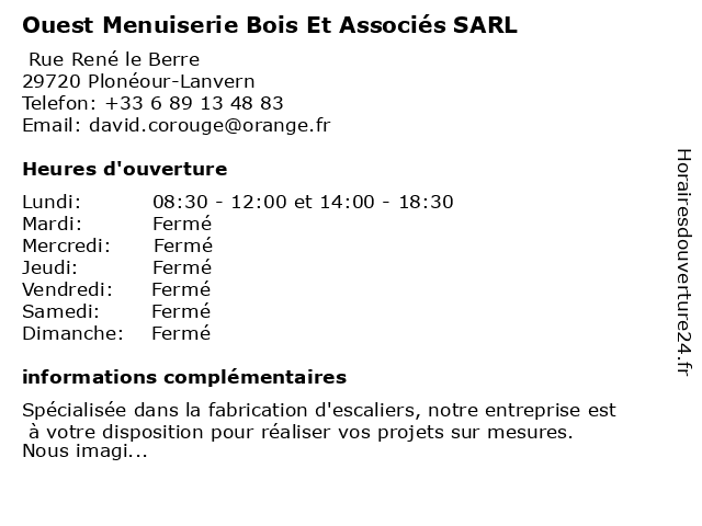 Termes de recherche pour Ouest Menuiserie Bois Et Associés SARL:et, bois, sarl, ouest, menuiserie, associés |