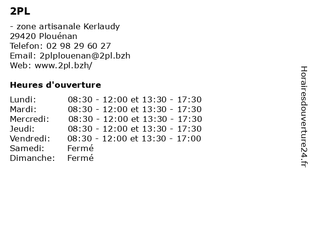 | Lundi | 08:30-12:00 et 13:30-17:30 |