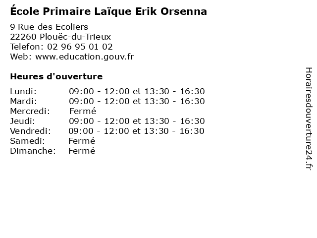 | Mardi | 09:00-12:00 et 13:30-16:30 |