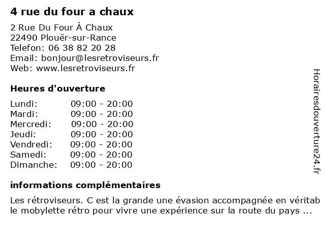 | Lundi | 09:00-20:00 |