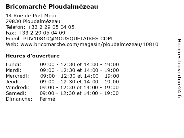 1 Bricomarché (Distance: 31,29 km) - ZI du bois noir, 29220 Landerneau bonnes affaires, bricolage, bricomarché, decoration, jardin, materiaux 2 Bricomarché St Pol De Leon (Distance: 51,72 km) Rue Joseph Kersebet, 29250 Saint-Pol-de-Léon bricomarché, de, leon, pol, st 4 Bricomarché Douarnenez (Distance: 58,05 km) Route du Drévez, 29100 Douarnenez bricomarché, douarnenez |