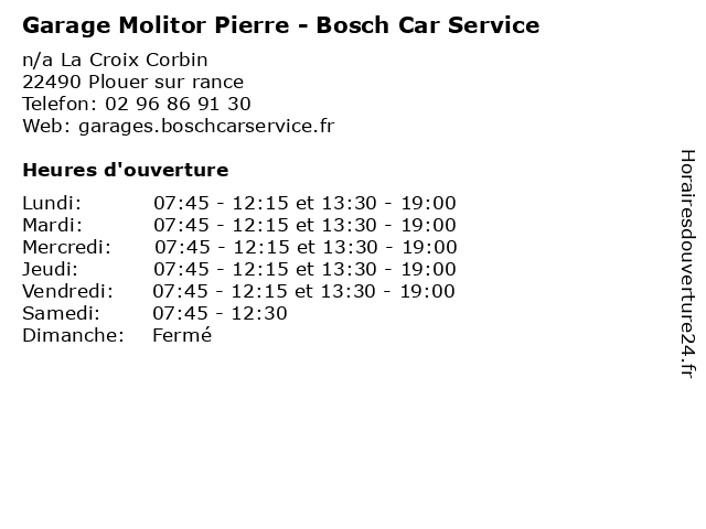 | Lundi | 07:45-12:15 et 13:30-19:00 |