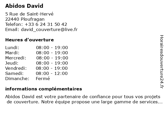 1 Jean Louis David (Distance: 3,79 km) 20 rue charbonnerie, 22000 Saint Brieuc barbier, beauté, cheveux, coiffeur, coiffure, david, esthétique, jean, louis, salon, visagiste 2 Maître David Quintin - Avocat (Distance: 3,83 km) 2 boulevard Clémenceau, 22000 Saint-Brieuc avocat, avocats, civils, david, droits, juridiques, maître, quintin 3 Artech Joint - David Meynier (Distance: 4,04 km) - Rue Ambroise Paré, 22190 Plerin agence, artech, david, joint, meynier, plaques, platre, specialisee 4 David Coiffure Centre Commercial (Distance: 4,95 km) Rue de la ville Neuve, 22190 Plérin centre, coiffure, commercial, david 6 Dr David Lechaux - Chirurgien digestif et viscéral (Distance: 5,03 km) 10 rue François Jacob, 22190 Plérin chirurgien, consultation, david, digestif, docteur, dr, et, lechaux, med, médecin, médecine, traitement, viscéral |