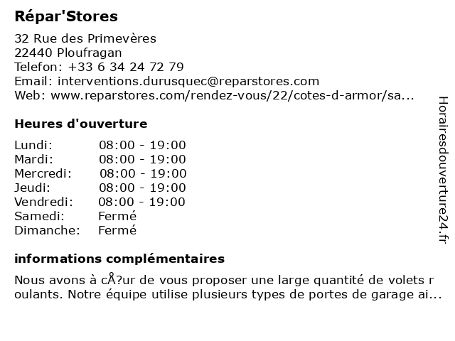 1 Bretagne Dunet Stores (Distance: 3,30 km) 89 Rue du Gouedic, 22000 Saint-Brieuc bretagne, deco, dunet, magasin, showroom, stores, voiles facettes 3 Garage Davenne - Euro Repar (Distance: 45,73 km) 14 Rue du Moulin Saint-Samson, 56580 Rohan automobiles, davenne, euro, garage, location de voiture, location de véhicules, motos, repar 4 Beaussais Stores et Fermetures (Distance: 49,52 km) Rue de Coutelouche, 22650 Ploubalay beaussais, et, fermetures, stores 6 EMC - Entreprise Menuiserie Charpente (Distance: 54,86 km) 47 route Tréguier, 22700 Louannec charpente, emc, entreprise, fenêtres, fermetures, installation, menuiserie, portes, rénovation, stores |