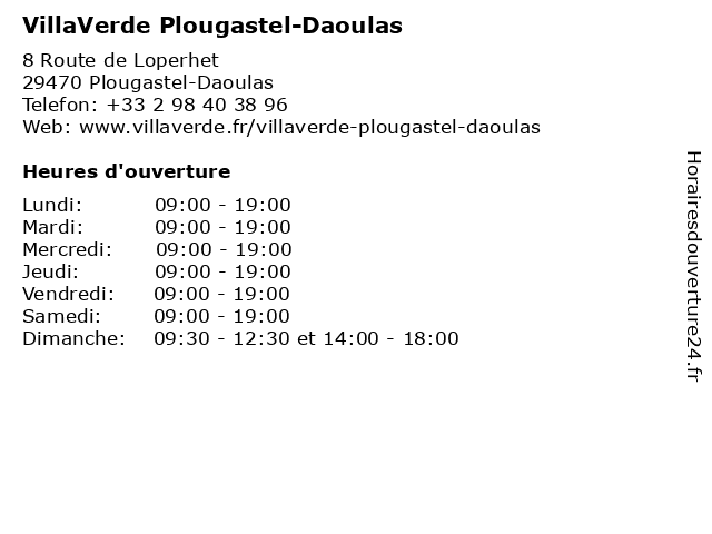 | Dimanche | 09:30-12:30 et 14:00-18:00 |