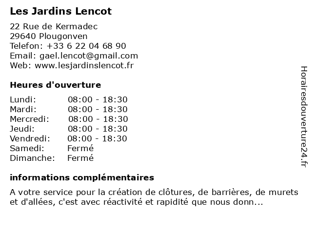 1 Accès Automatiques Lencot (Distance: 3,45 km) 3 Rue Kermorvan, 29640 Plougonven accès, automatiques, lencot 3 Cheminees Lencot (Distance: 12,66 km) Rue du Grand Launay, 29600 Saint-Martin-des-Champs cheminees, lencot 4 Ateliers Des Jardins Et Compagnie (Distance: 18,15 km) 7 Rue de Keriziou, 29241 Locquirec ateliers, compagnie, des, et, jardins 5 Jardin Exotique & Botanique de Roscoff (Distance: 28,72 km) - Lieu-dit Roc'h Hievec, 29680 Roscoff botanique, de, exotique, jardin, jardins, le, roscoff 6 Les Jardins De Kerfouler (Distance: 42,58 km) Les Jardins De Kerfouler, 22260 Plouec Du Trieux erwin, jardins, kerfouler, restaurants, straalman |