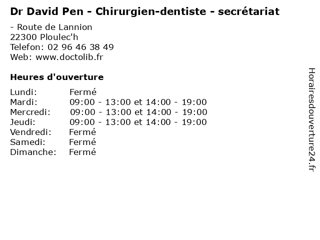 | Mardi | 09:00-13:00 et 14:00-19:00 |