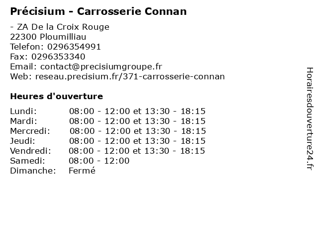 | Lundi | 08:00-12:00 et 13:30-18:15 |