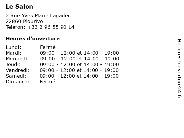 | Samedi | 09:00-12:00 et 14:00-19:00 |