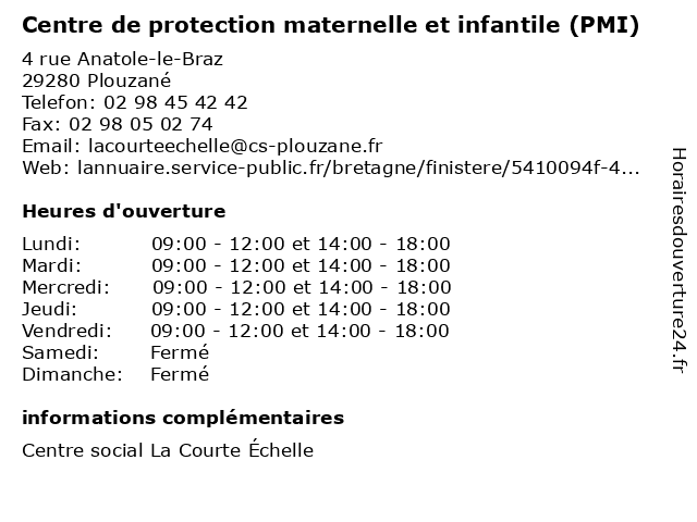 1 Centre de Protection Maternelle et Infantile (PMI) (Distance: 5,46 km) 1 rue de Lescao, 29290 Saint-Renan administration, assoc, associations, aux, centre, d'information, de, des, dédié, et, greffe, infantile, information, local, locale, maternelle, mission, personnes, pmi, protection 2 Centre de protection maternelle et infantile (PMI) (Distance: 5,67 km) 25 Rue Anatole-France, 29200 Brest administration, assoc, associations, aux, centre, d'information, de, des, dédié, et, greffe, infantile, information, local, locale, maternelle, mission, personnes, pmi, protection 3 Centre de protection maternelle et infantile (PMI) (Distance: 7,53 km) 33 Rue Saint-Exupéry, 29200 Brest administration, assoc, associations, aux, centre, d'information, de, des, dédié, et, greffe, infantile, information, local, locale, maternelle, mission, personnes, pmi, protection 4 Centre de protection maternelle et infantile (PMI) (Distance: 7,64 km) 13 Place Napoléon-III, 29200 Brest administration, assoc, associations, aux, centre, d'information, de, des, dédié, et, greffe, infantile, information, local, locale, maternelle, mission, personnes, pmi, protection 5 Centre de protection maternelle et infantile (PMI) (Distance: 9,12 km) - Rue Pen-Ar-Pave, 29200 Brest centre, conseils, de, et, infantile, maternelle, parents, pmi, protection, prévention, puéricultrice, pédiatre 6 Centre de protection maternelle et infantile (PMI) (Distance: 12,17 km) n/a Place du 19-Mars-1962, 29160 Crozon administration, assoc, associations, aux, centre, d'information, de, des, dédié, et, greffe, infantile, information, local, locale, maternelle, mission, personnes, pmi, protection |