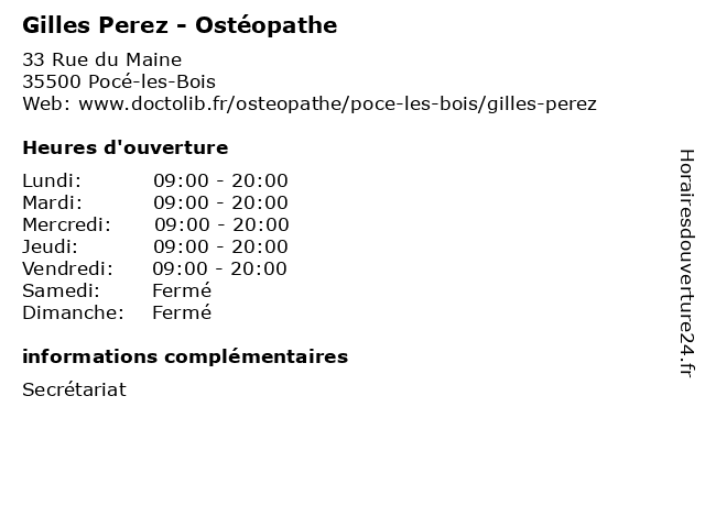 | Mercredi | 09:00-20:00 |