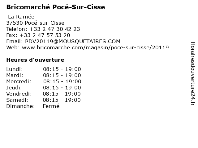 2 Bricomarché (Distance: 0,10 km) - La Ramee, 37530 Pocé-sur-Cisse bonnes affaires, bricolage, bricomarché, decoration, jardin, materiaux 4 Bricomarché Elvilia Entreprise Indépendante (Distance: 15,01 km) 11 Rue Marie de Lorraine, 37700 La Ville-aux-Dames bricomarché, elvilia, entreprise, indépendante 5 Bricomarché La Ville Aux Dames (Distance: 15,02 km) 11 Rue Marie de Lorraine, 37700 La Ville-aux-Dames aux, bricomarché, dames, la, ville 6 |