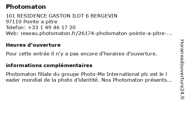 2 Photomaton (Distance: 0,90 km)4 RUE LEHTIERE, 97110 Pointe a pitre photomaton