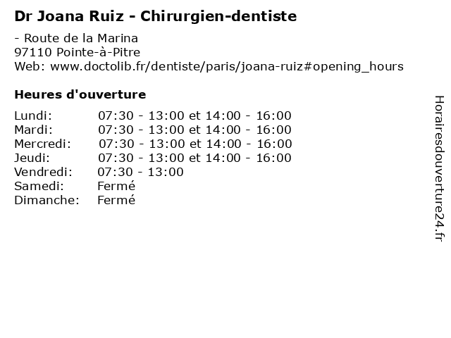 | Mardi | 07:30-13:00 et 14:00-16:00 |