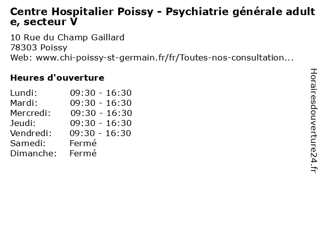 Termes de recherche pour Centre Hospitalier Poissy - Psychiatrie générale adulte, secteur V:poissy, bureau, centre, générale, med, secteur, traitement, hospitalier, médecin, adulte, consultation, la médecine, dr, psychiatrie, therapie, la maladie, la pratique |
