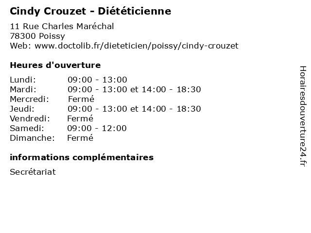 | Mardi | 09:00-13:00 et 14:00-18:30 |