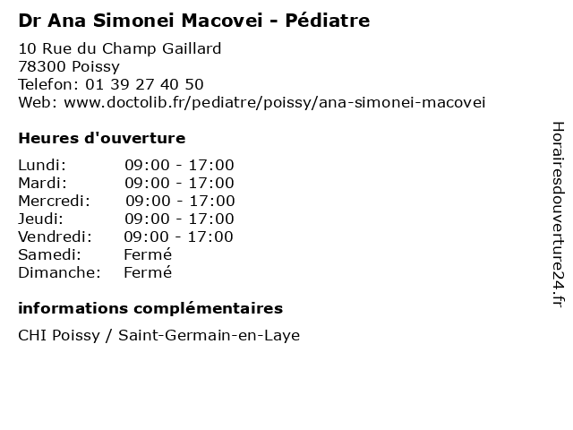 1 Dr Marwa Jlassi - Pédiatre (Distance: 0,00 km) 10 Rue du Champ Gaillard, 78300 Poissy docteur, dr, jlassi, marwa, médecin, pédiatre, vaccination 2 Dr Rodolphe Dard - Pédiatre (Distance: 0,00 km) 10 Rue du Champ Gaillard, 78300 Poissy dard, docteur, dr, médecin, pédiatre, rodolphe, vaccination 3 Dr Sophie Blais Bellut - Pédiatre (Distance: 0,00 km) 10 Rue du Champ Gaillard, 78300 Poissy bellut, blais, docteur, dr, médecin, pédiatre, sophie, vaccination 4 Dr Audrey Rolland - Pédiatre (Distance: 0,00 km) 10 Rue du Champ Gaillard, 78300 Poissy audrey, consultation, docteur, dr, med, médecin, pédiatre, rolland, traitement 5 Dr Amélie Durandy - Pédiatre (Distance: 0,00 km) 10 Rue du Champ Gaillard, 78300 Poissy amélie, docteur, dr, durandy, médecin, pédiatre, vaccination 6 Dr Wiem Hassen-Jutteau - Pédiatre (Distance: 0,00 km) 10 Rue du Champ Gaillard, 78300 Poissy docteur, dr, hassen, jutteau, médecin, pédiatre, vaccination, wiem |
