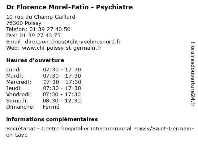 1 Dr Jacqueline Teboul - Pédo-psychiatre (Distance: 0,00 km) 10 rue du Champ Gaillard, 78300 Poissy bebe, ch, dr, en, germain, intercommunal, jacqueline, laye, nourisson, poissy, poissy/saint, psychiatre, pédiatre, pédiatrie, pédo, teboul 2 D Hatem Ben Bdira - Psychiatre (Distance: 0,00 km) 10 rue du Champ Gaillard, 78300 Poissy bdira, ben, consultation, docteur, hatem, med, médecin, médecine, psychiatre, traitement 3 Dr Catherine Benzaken-Carlier - Psychiatre (Distance: 0,00 km) 10 rue du Champ Gaillard, 78300 Poissy benzaken, carlier, catherine, consultation, docteur, dr, med, médecin, médecine, psychiatre, traitement 4 Dr Maria-Clara Morales-Gil - Psychiatre (Distance: 0,00 km) 10 rue du Champ Gaillard, 78300 Poissy clara, consultation, docteur, dr, gil, maria, med, morales, médecin, psychiatre, traitement 5 Dr Sarah Claquin - Psychiatre (Distance: 0,00 km) 10 rue du Champ Gaillard, 78300 Poissy claquin, consultation, docteur, dr, med, médecin, psychiatre, sarah, traitement 6 Dr Véronique Meneghini - Psychiatre (Distance: 0,00 km) 10 rue du Champ Gaillard, 78300 Poissy consultation, docteur, dr, med, meneghini, médecin, psychiatre, traitement, veronique, véronique |