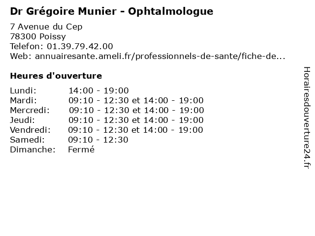 | Mercredi | 09:10-12:30 et 14:00-19:00 |