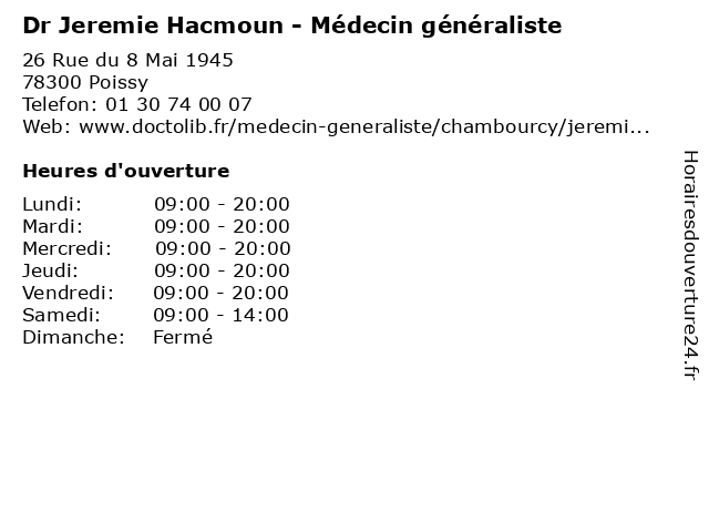 1 Lefevre Jeremie (Distance: 5,20 km) Batiment a, 78100 Saint Germain En Laye jeremie, lefevre, restaurants 2 Dr Jeremie Boutet - Médecin généraliste (Distance: 13,56 km) 104 boulevard Raymond Poincaré, 92380 Garches boutet, consultation, docteur, dr, généraliste, jeremie, med, médecin, médecine, traitement 3 Dr Jeremie Zeitoun - Pédiatre (Distance: 15,80 km) 6 Avenue de l'Île de France, 95300 Pontoise dr, enfant, jeremie, pediatre, pédiatre, sante, soins, zeitoun 4 Duphenieux Jeremie Zoltan (Distance: 16,84 km) Appartement 17, 92200 Neuilly Sur Seine duphenieux, jeremie, restaurants, zoltan 5 Maître Jeremie Nutkowicz - Avocat (Distance: 19,00 km) 26 Avenue de la grande Armée, 75017 Paris avocat, avocats, cabinet, conseils, contentieux, jeremie, juridique, justice, litiges, maître, nutkowicz, services 6 Maître Jeremie Darmon - Avocat (Distance: 19,62 km) 47 Avenue Hoche, 75008 Paris avocat, darmon, honoraires, jeremie, justice, maître, paris |