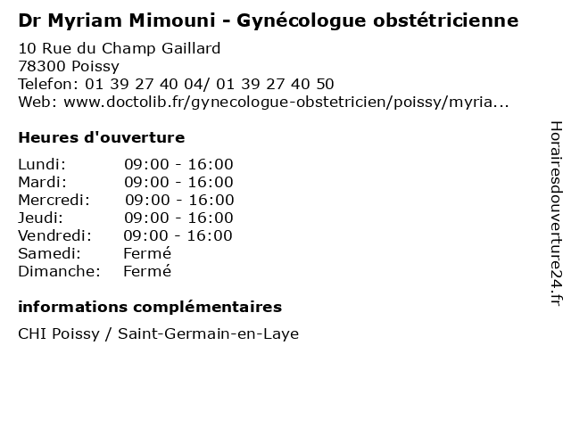 1 Dr Myriam Mimouni - Gynécologue obstétricienne (Distance: 17,76 km) 8 Rue Pau Casals, 92100 Boulogne-Billancourt bebe, dr, gynecologie, gynécologue, maternite, mimouni, myriam, obstetrique, obstétricienne 2 Dr Myriam Mimouni - Gynécologue obstétricienne (Distance: 18,77 km) 101 Bis avenue Victor Hugo, 92100 Boulogne-Billancourt dr, gynécologie, gynécologue, mimouni, myriam, obstétricien, obstétricienne 3 Pr Cyrille Huchon - Gynécologue obstétricien (Distance: 0,00 km) 10 Rue du Champ Gaillard, 78300 Poissy consultation, cyrille, docteur, gynécologue, huchon, med, médecin, médecine, obstétricien, pr, secrétariat, traitement 4 Dr Salma Tazi - Gynécologue médical et obstétrique (Distance: 0,00 km) 10 Rue du Champ Gaillard, 78300 Poissy bebe, dr, et, gynecologie, gynécologue, maternite, médical, obstetrique, obstétrique, salma, tazi 5 Dr Robert Wainer - Gynécologue obstétricien (Distance: 0,00 km) 10 Rue du Champ Gaillard, 78300 Poissy consultation, docteur, dr, gynécologue, med, médecin, médecine, obstétricien, robert, traitement, wainer 6 Dr Mireille Ruiz - Gynécologue obstétricien (Distance: 0,00 km) 10 Rue du Champ Gaillard, 78300 Poissy consultation, docteur, dr, gynécologue, med, mireille, médecin, médecine, obstétricien, ruiz, traitement |