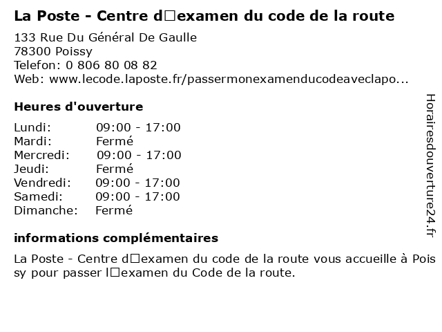 Termes de recherche pour La Poste - Centre d’examen du code de la route:poste, la, du, de, route, centre, code, d’examen, centre d'évaluation scolaire, école technique |