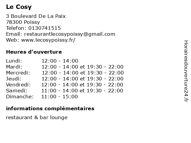 Termes de recherche pour Le Cosy:café, le, bar, poissy, restaurants, cosy, sobrabal |